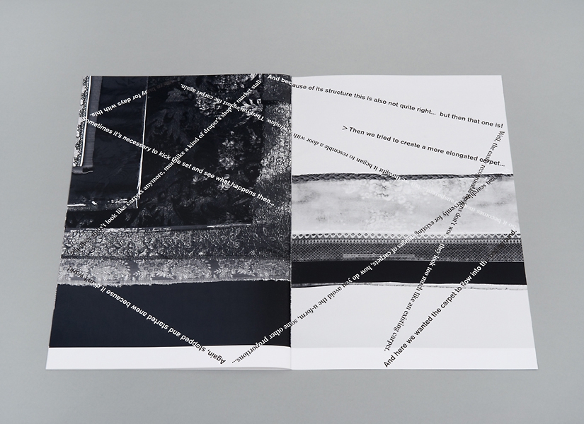 billiards:The second text is about the making proces of the carpets. The sentences reverberating from side to side, symbolising the working proces in the studio where S&A react on eachother, move things around, taking numerous shots and study them in order to arrive at the right composition. |