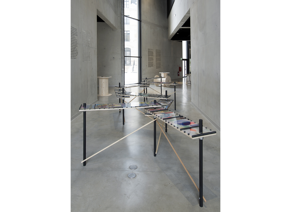 folding·ruler:The installation 1:1:1 Unfolded presents nine cahiers, made by Richard Niessen and Esther de Vries, which were inspired by encounters and interviews with artists and designers. They themselves call them ‘printed documentaries’. The design of the installation refers to a folding ruler (flexibility of a tool) and a fan of swatches (the spectrum of possibilities). |