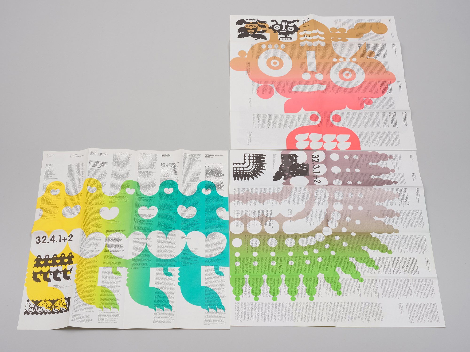 | matching:For this series, we drew inspiration from the game Serpentino, a simple game consisting of tiles featuring parts of cute, colourful snakes. Each issue featured a part of the body – a head or tail, or a curved section – as a background for the text. |