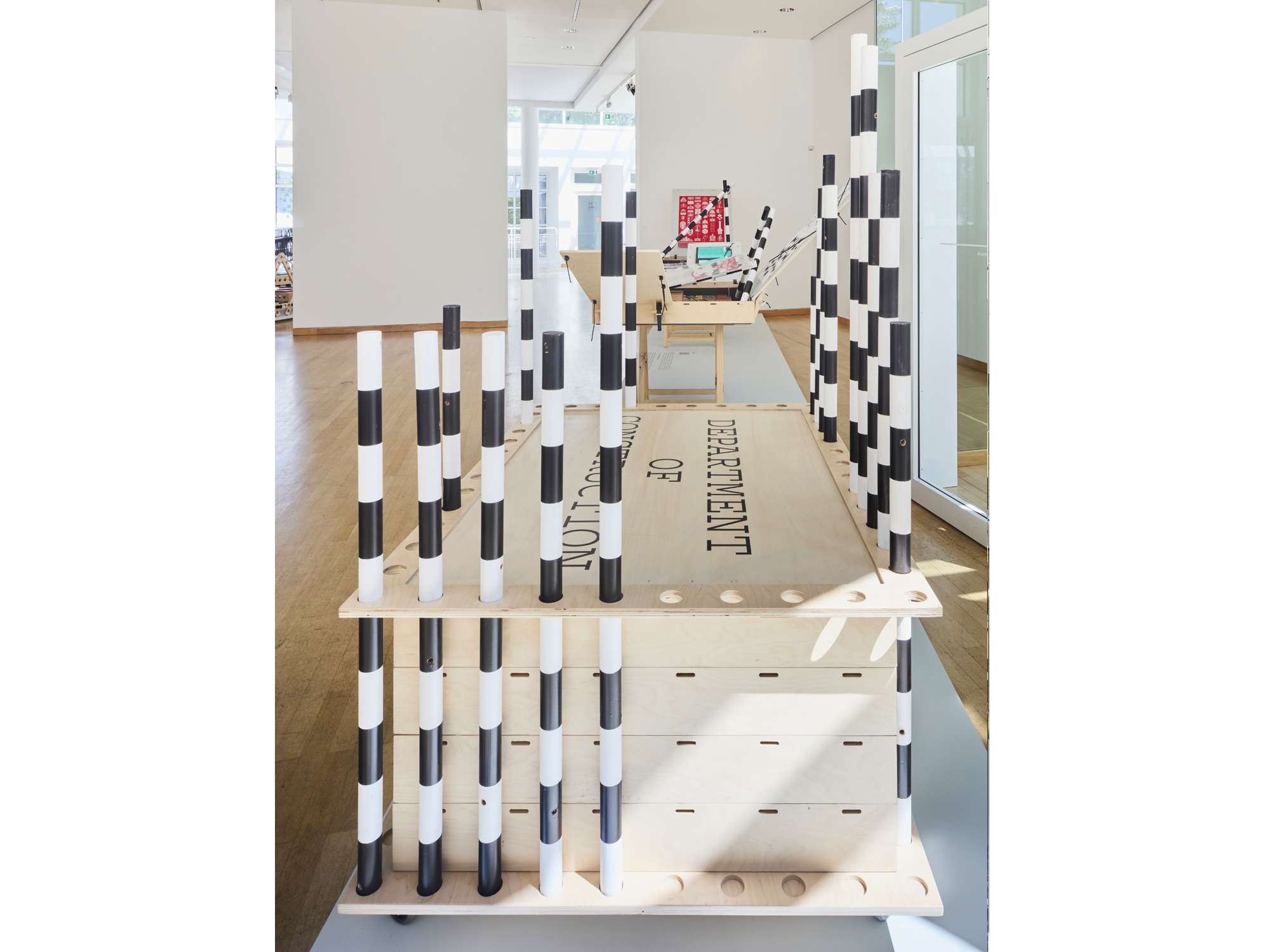 department:The travelling exhibition An Alphabet of Cases was on display from 22 February to 11 May at the Museum Angewandte Kunst in Frankfurt, where it occupied the entire second floor. The nine sections of the Palace of Typographic Masonry were represented by two or three open drawers. The rest of the drawers on each floor of the imaginary building formed a stack. |