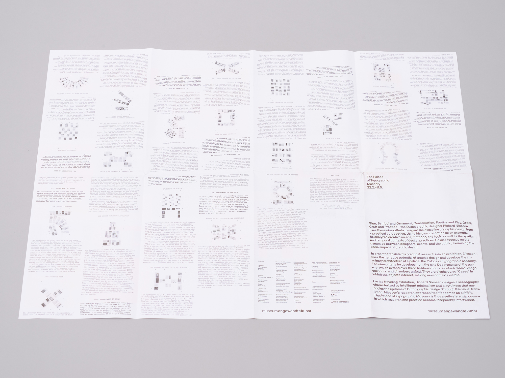 When unfolded, you will find an overview of all rooms and their symbols and descriptions on the inside of the sheet.