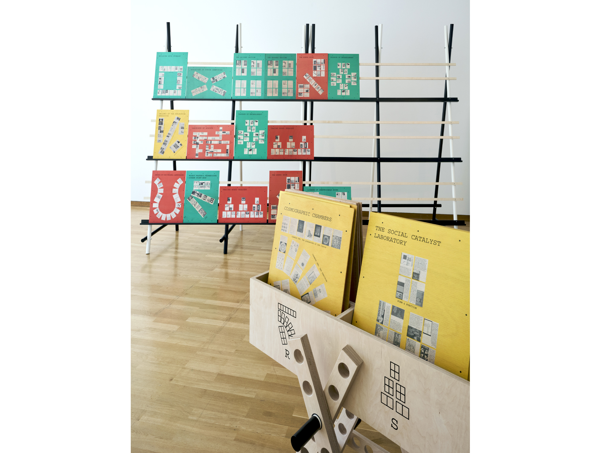 reading·rack: I designed two new installations especially for the exhibition, the first of which is this Reading Rack. All the rooms in the Palace of Typographic Masonry are represented by a symbol made up of index cards. The shape of each symbol is specific to the structure of the room in question. Together, all the symbols form a secret alphabet that visitors can use to convey messages.