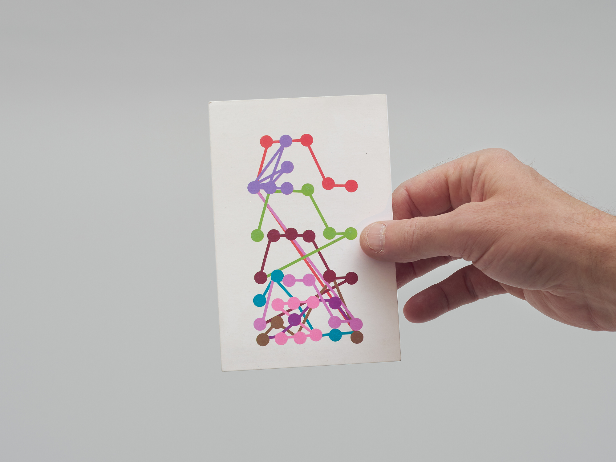 how:For my final exam in 1996, I asked myself whether I could notate music in different ways. I took a song by my band, The Howtoplays, and came up with 10 ways to score it, with each method emphasising a different aspect of the music. One of the notations simply involved drawing the chord fingerings on the guitar and giving each a different colour. That also became the image I used for the announcement card.