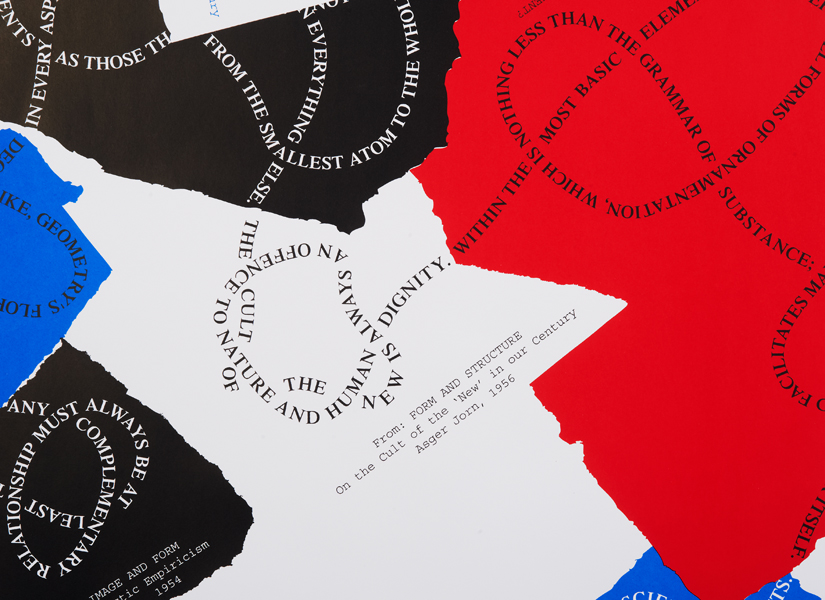 scraps·of·paper: It seemed suitable to take some characteristic quotes from Jorn in order to create the postmarks. By putting the texts on paper scraps suddenly also the brutal and manual, or physical, aspect of Jorn’s work was addressed, and the design became more dynamic and spatial.