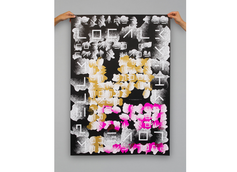specimen:The typeface created for this project mimics a diagram from Tao Magic drawn by Jennifer Tee with the help of matches on a square grid. The letters were cut out from a color gradient. Showcasing the Lucifer font, the poster is influenced by the aesthetics of the Go game. |