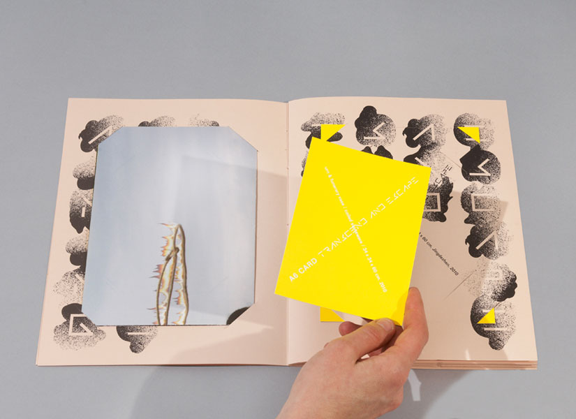 The reverse side of the posters, cards and booklets are all printed with fluorescent yellow, continuing the aesthetic theme started by James Langdon who used the colour for the invitations to the show.
