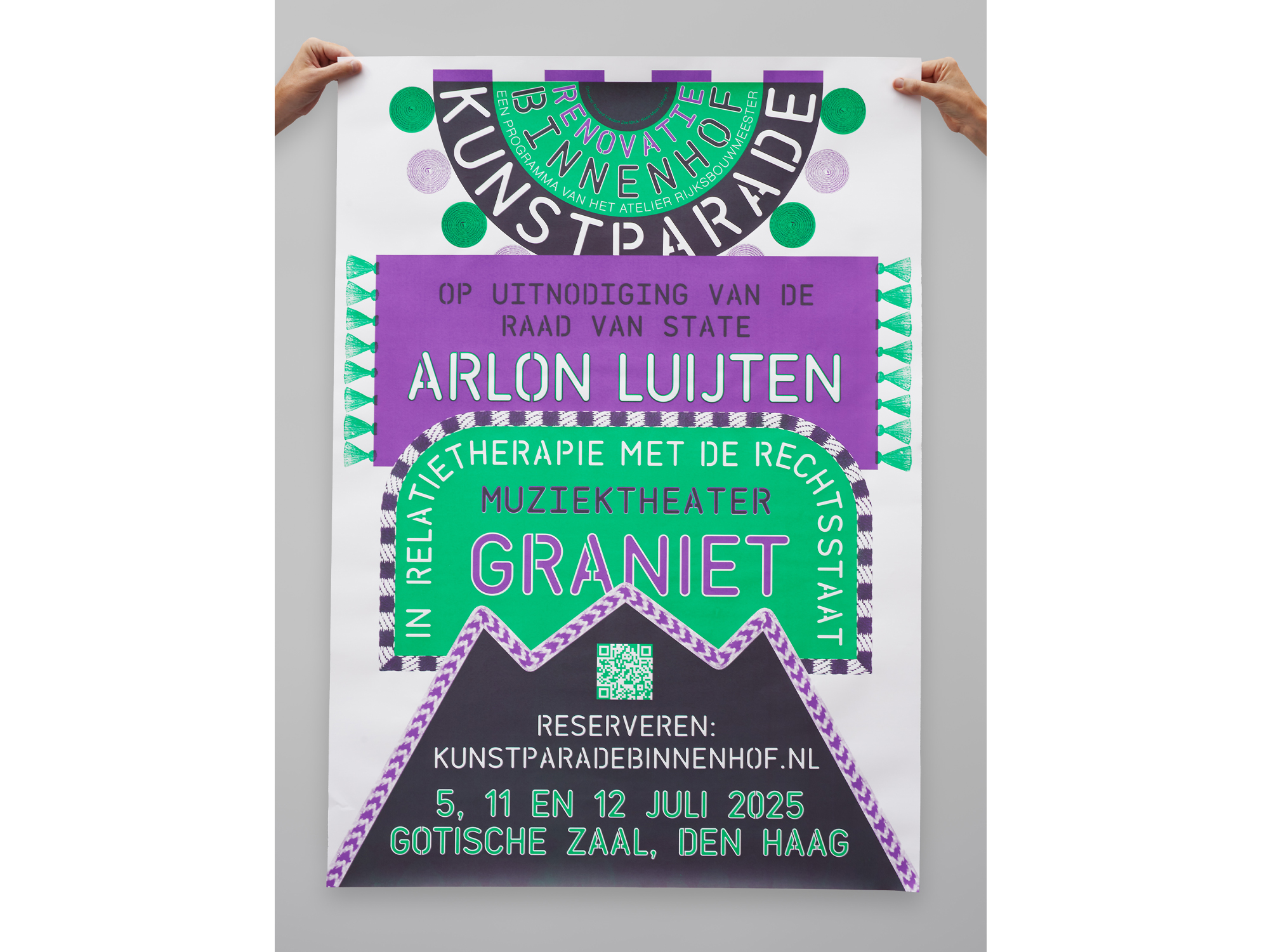 The fourth invited artist was Arlon Luijten. He created the performance Graniet, in which the rule of law undergoes relationship therapy.