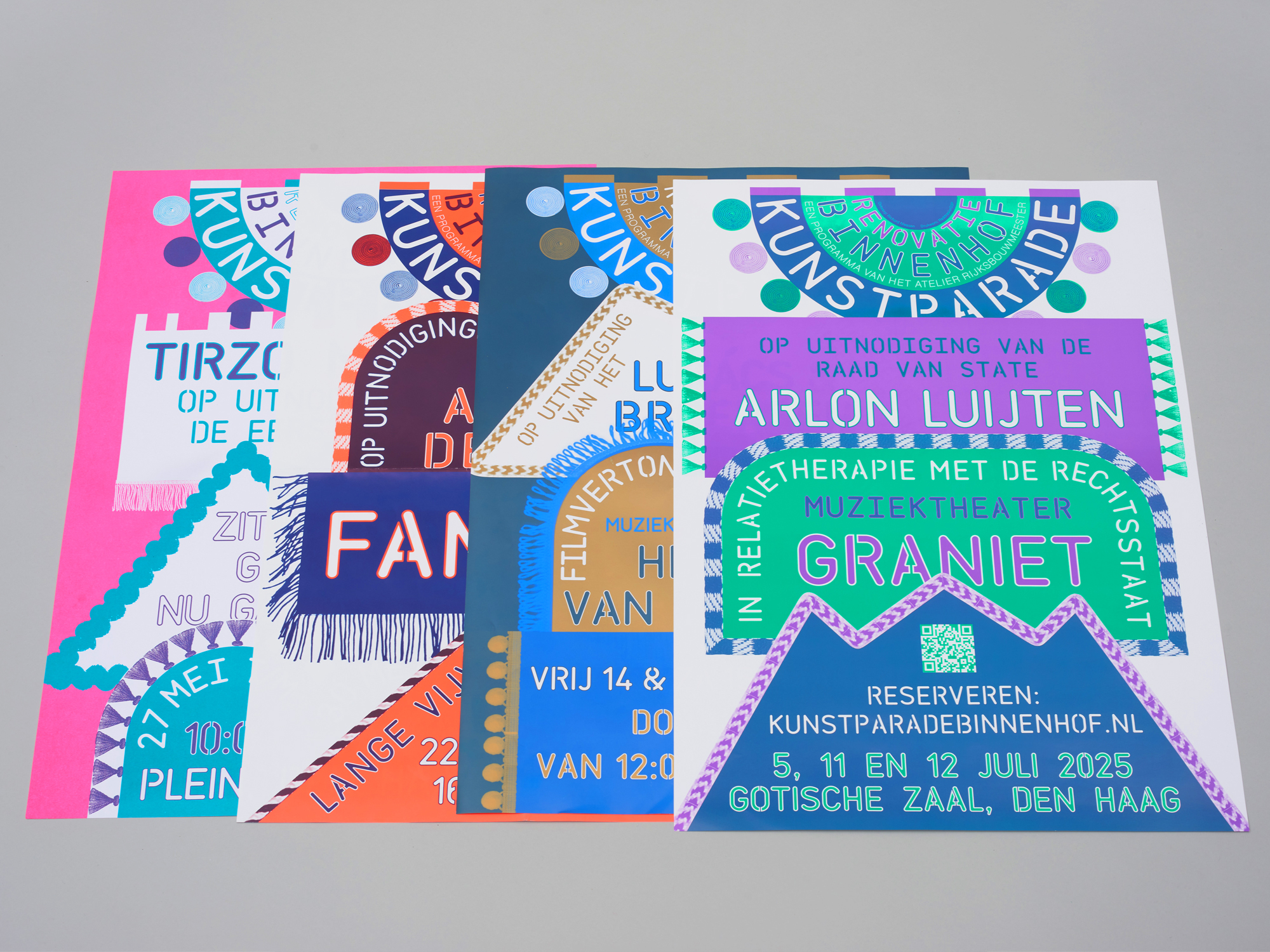 The visual language of the Art Parades, the fringed banners combined with stencil lettering, creates a sense of unity, while each instalment is unique with its own colours and shapes.