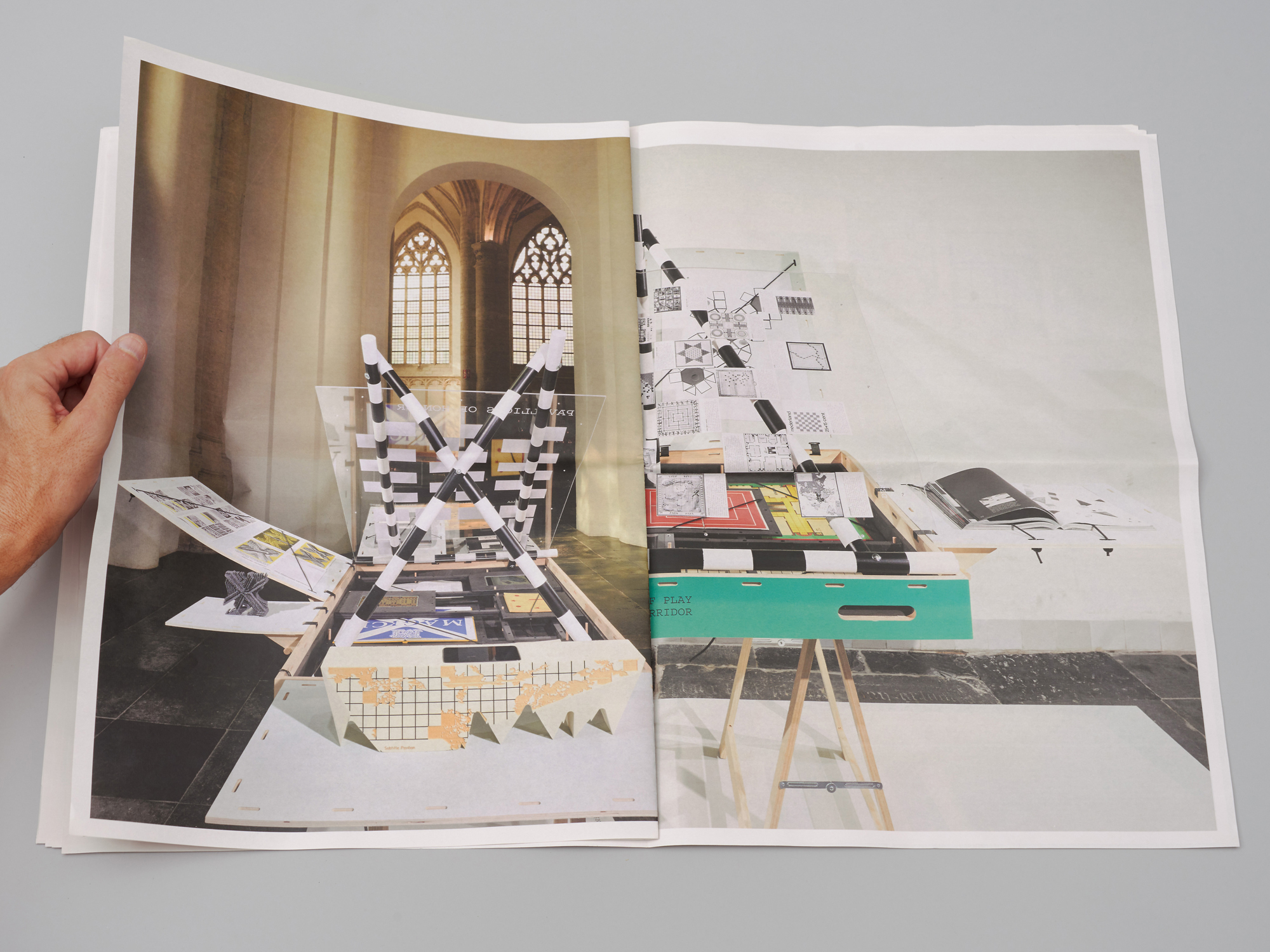The loose pages of the newspaper are used to show the landscape images in their entirety. When folded, however, they combine with the portrait images, creating a unique effect.