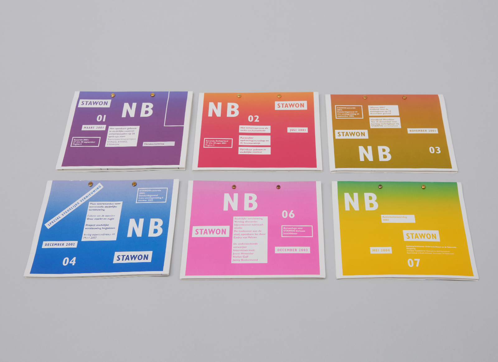 | stawon:(Stichting Architecten onderzoek Wonen en Woonomgeving (Foundation for Architectural Research on Housing and Residential Environment) was a research project of the BNA (Beroepsvereninginging Nederlandse Architecten). About twice a year, the foundation sent out a newsletter. Originally designed by Richard Niessen in 1997, a new series started in 2001 on the same basis. |