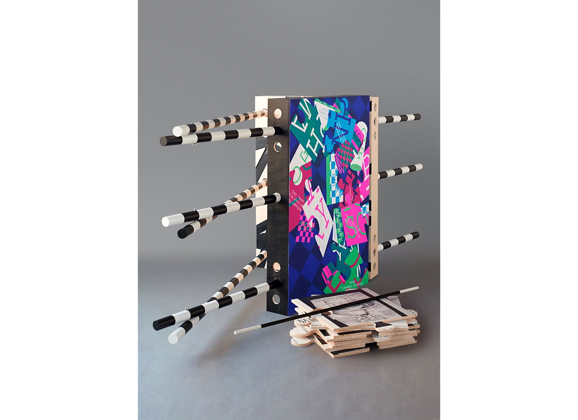 box:its elements are all pieces of a puzzle that fit together when the designer practises his or her trade – like cogs and wheels in an inquisitive, playful, form-generating machine. The 9 objects refer to the 9 departments in the palace: Sign, Symbol and Ornament, Construction, Poetics and Game, Order, Craft and Practise. |